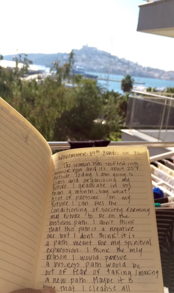 Today I am writing this from my Balcony in Ibiza, Spain. The weather now is 68 F or 20 C. I had breakfast on the beach and then came home to hang up my laundry. After hanging up my laundry, I pulled out one of my old journals and began to reflect on past selves. Happy to say I’m making an old me proud.