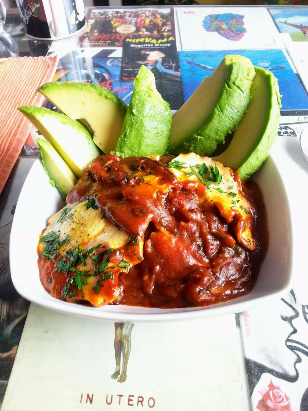 The other day Jon told me that he was going to surprise me with a new dish for breakfast. Jon is always outdoing himself in the kitchen (the night before he made GF chicken and dumplings) so I knew I was in for something special.Living in the south-west region of Spain, we get a cultural blend of Morocco and Spanish cuisine. The other day Jon prepared for us Shakahuka, a popular Middle Eastern/North African dish. Very different from a Spanish or American breakfast (the two breakfasts I know best.) Shakahuka is a dish of poached eggs cooked in a spicey tomato sauce and seasoned with cumin and other spices. We served our Shakashuka with avacado and toast and enjoyed our meal with a nice balcony view. It was the perfect Saturday morning. 😋